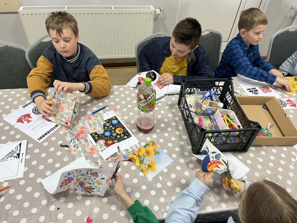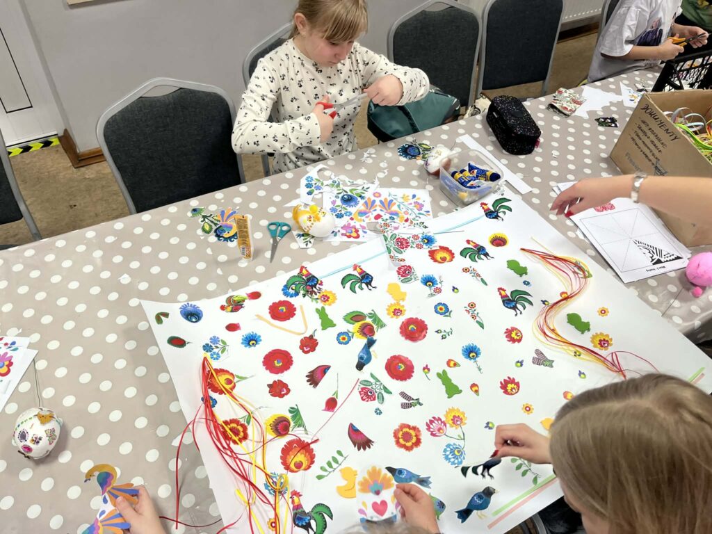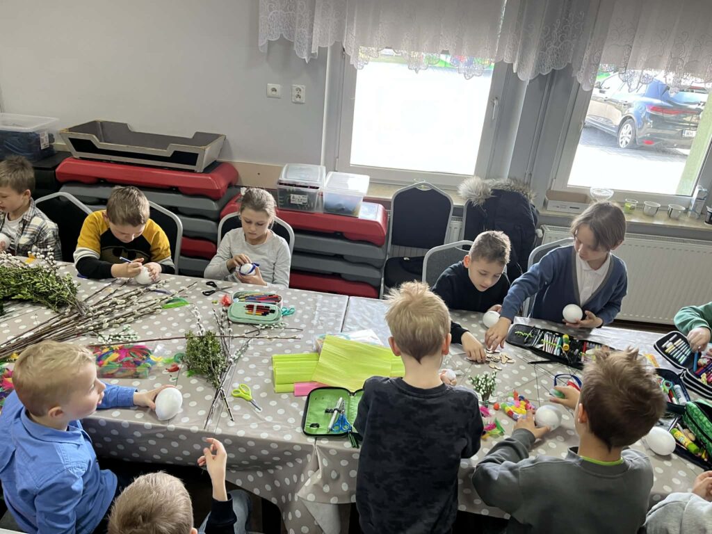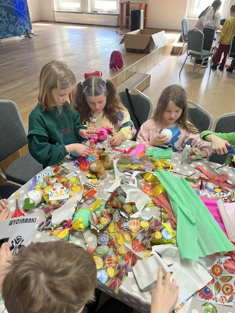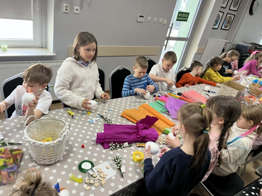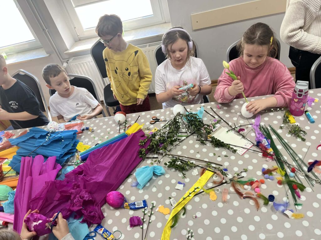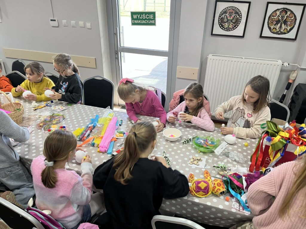 W trakcie zajęć uczestnicy wykonywali oraz zdobili styropianowe jajka wielkanocne, a także tworzyli tradycyjne wycinanki ludowe. Warsztaty przebiegały w atmosferze zaangażowania i twórczej pracy, a efekty działań uczestników spotkały się z uznaniem prowadzących oraz opiekunów.